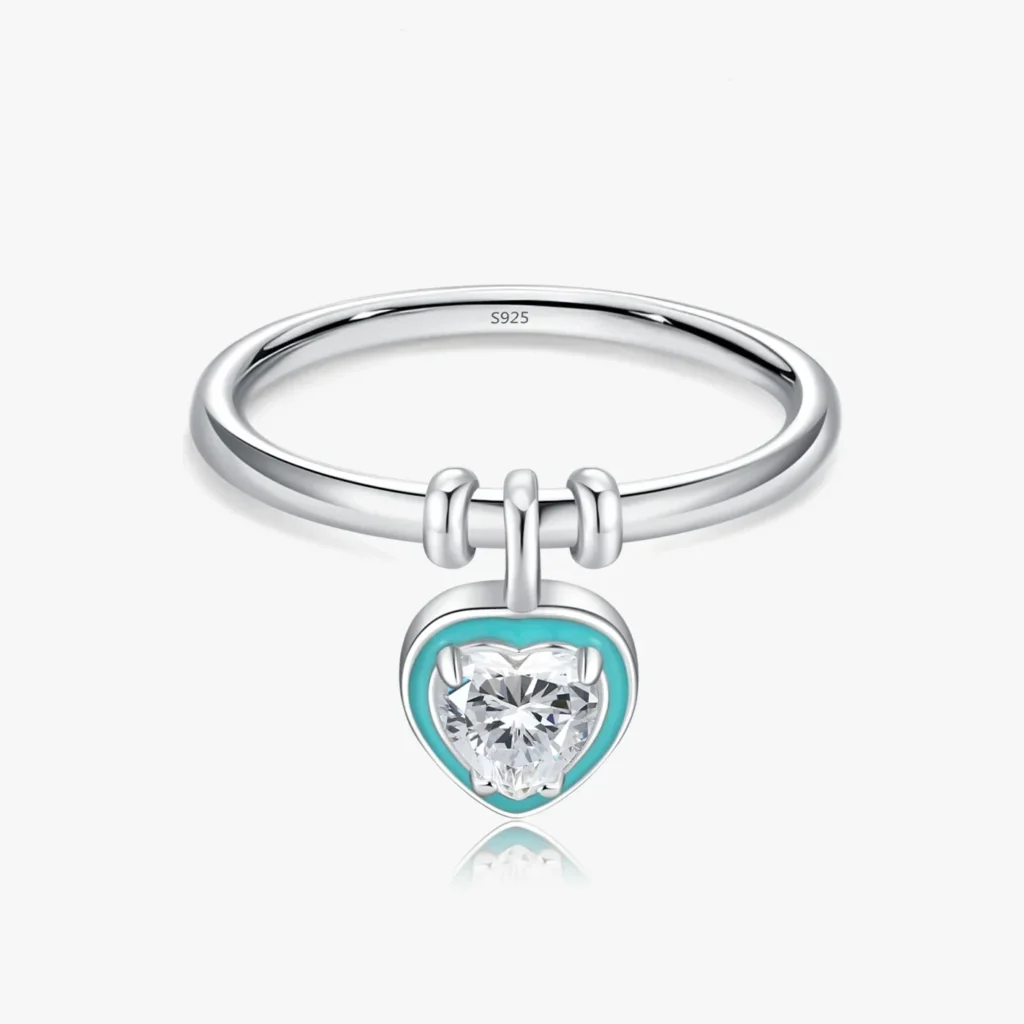 925 Sterling Silver Green Enamel Heart Love Charm Rings Wholesale