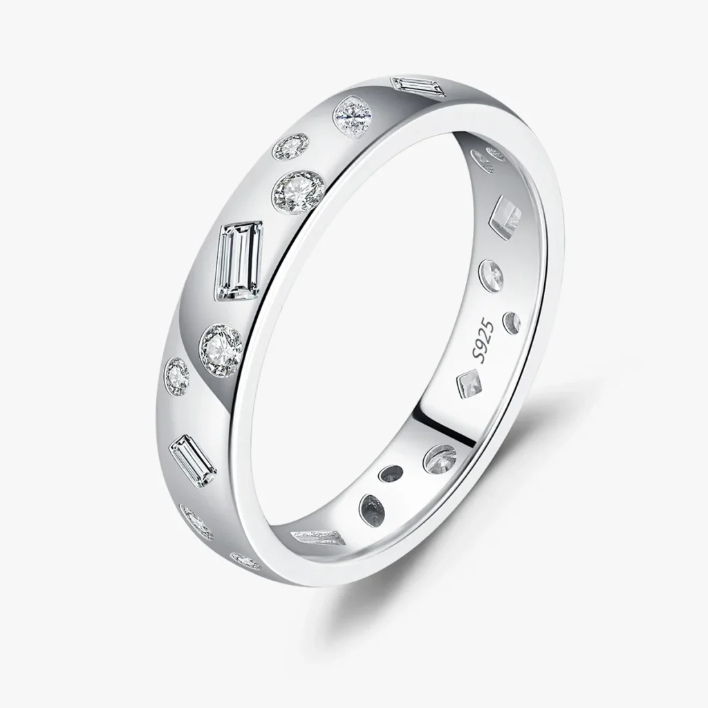 925 Sterling Silver Geometric Clear CZ Eternity Stackable Rings Wholesale