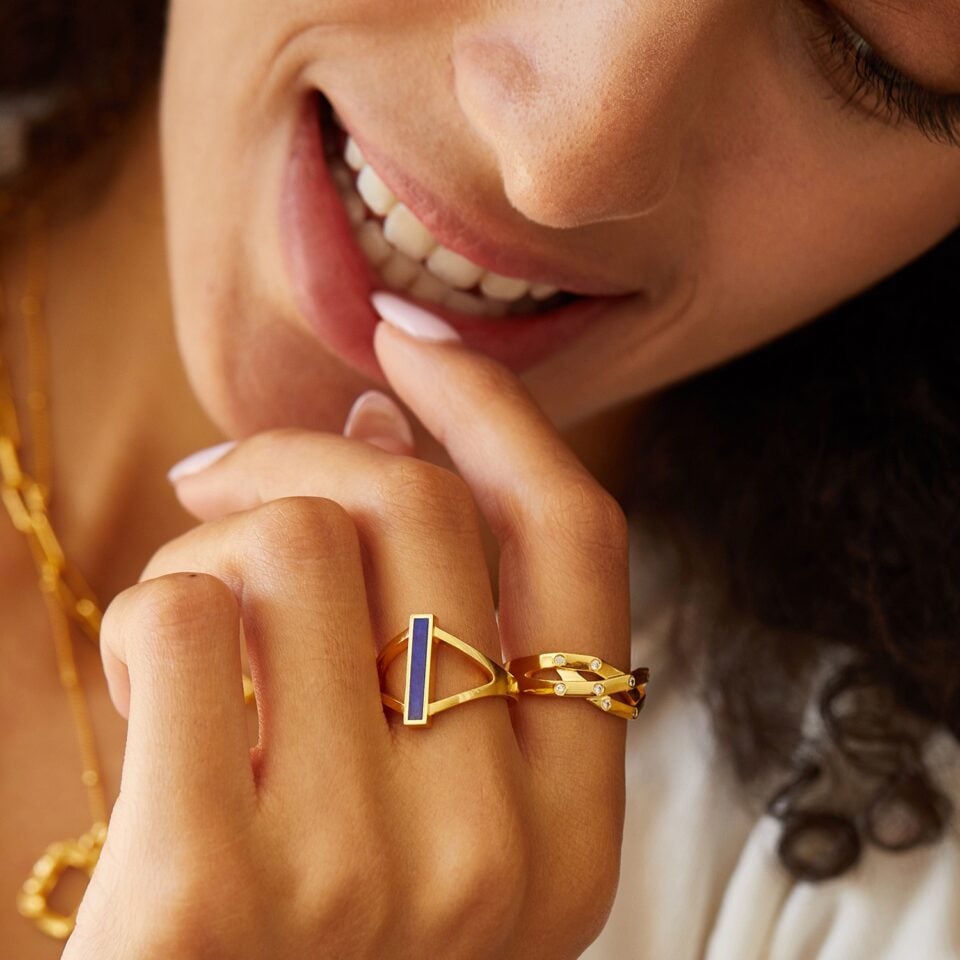 Double Triangle Sterling Silver Natural Lapis Lazuli Ring