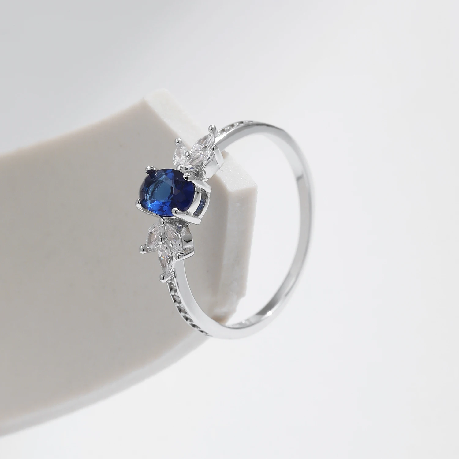 925 Sterling Silver Classic Oval Royal Blue CZ Ring Wholesale