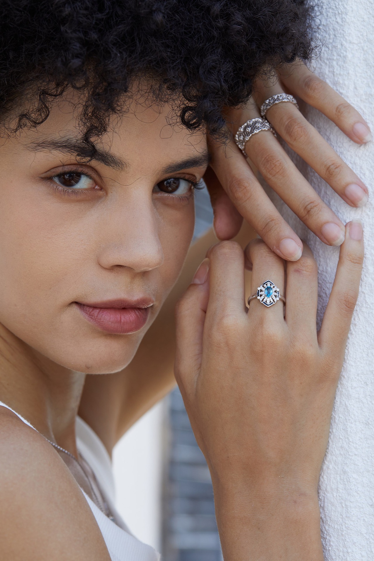 Be the first to review “London Blue Topaz Sterling Silver Sky Diamond Ring”