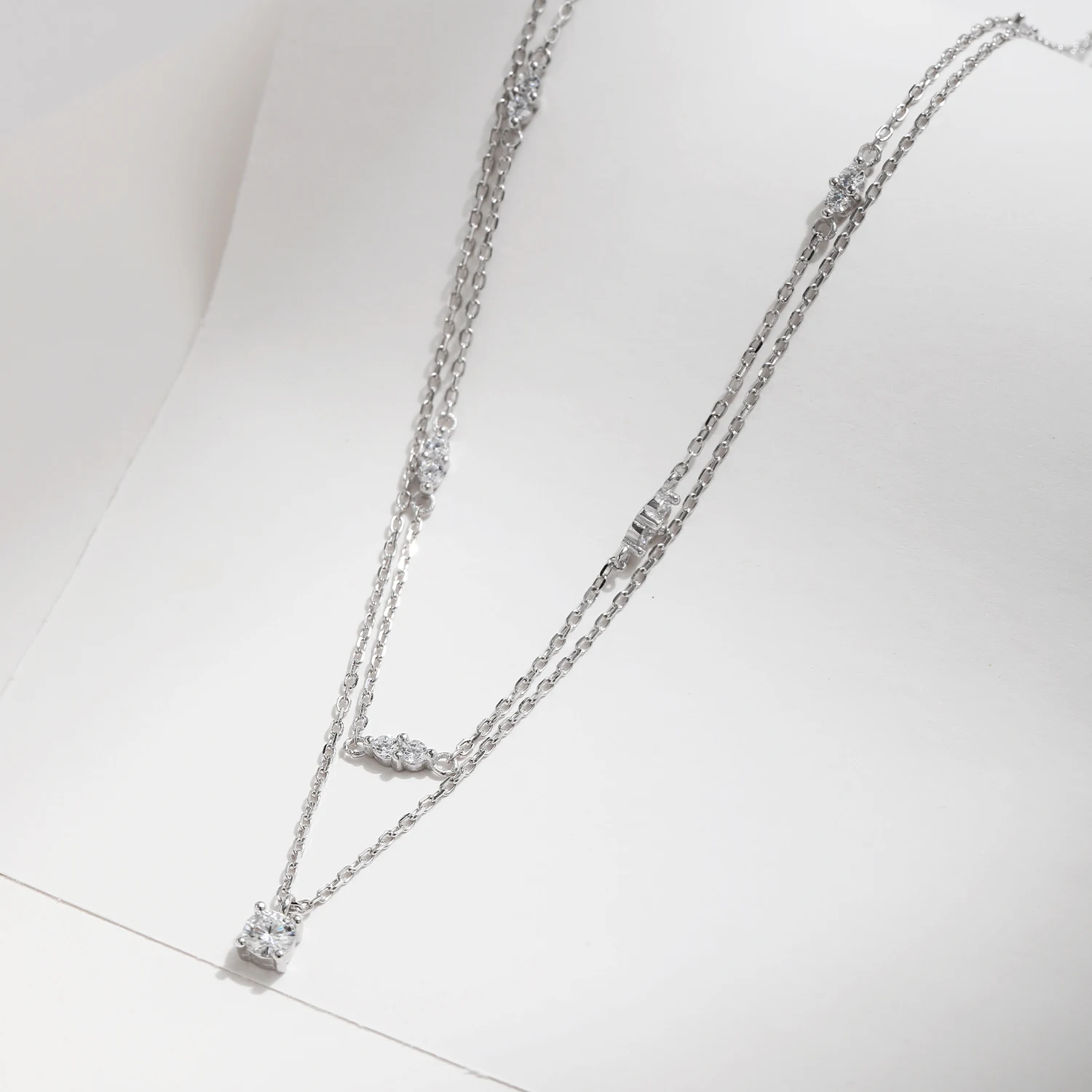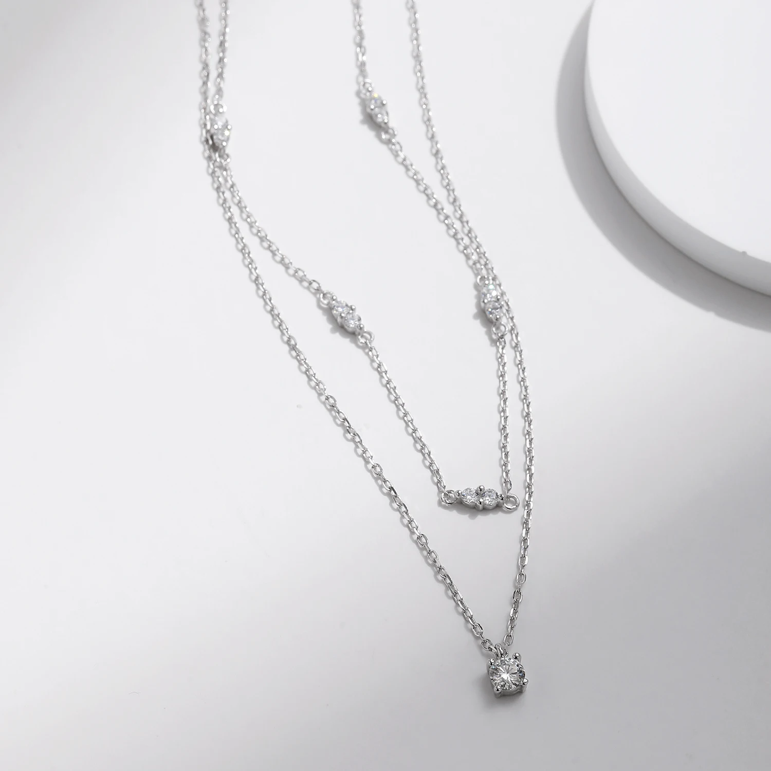 Moissanite D Color 925 Sterling Silver Double Layer Necklace Wholesale