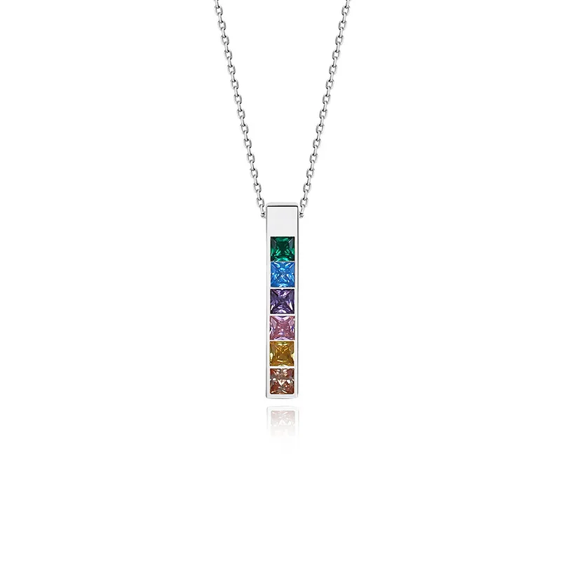Multi-Color CZ Rainbow Vertical Bar Pendant Necklace Wholesale