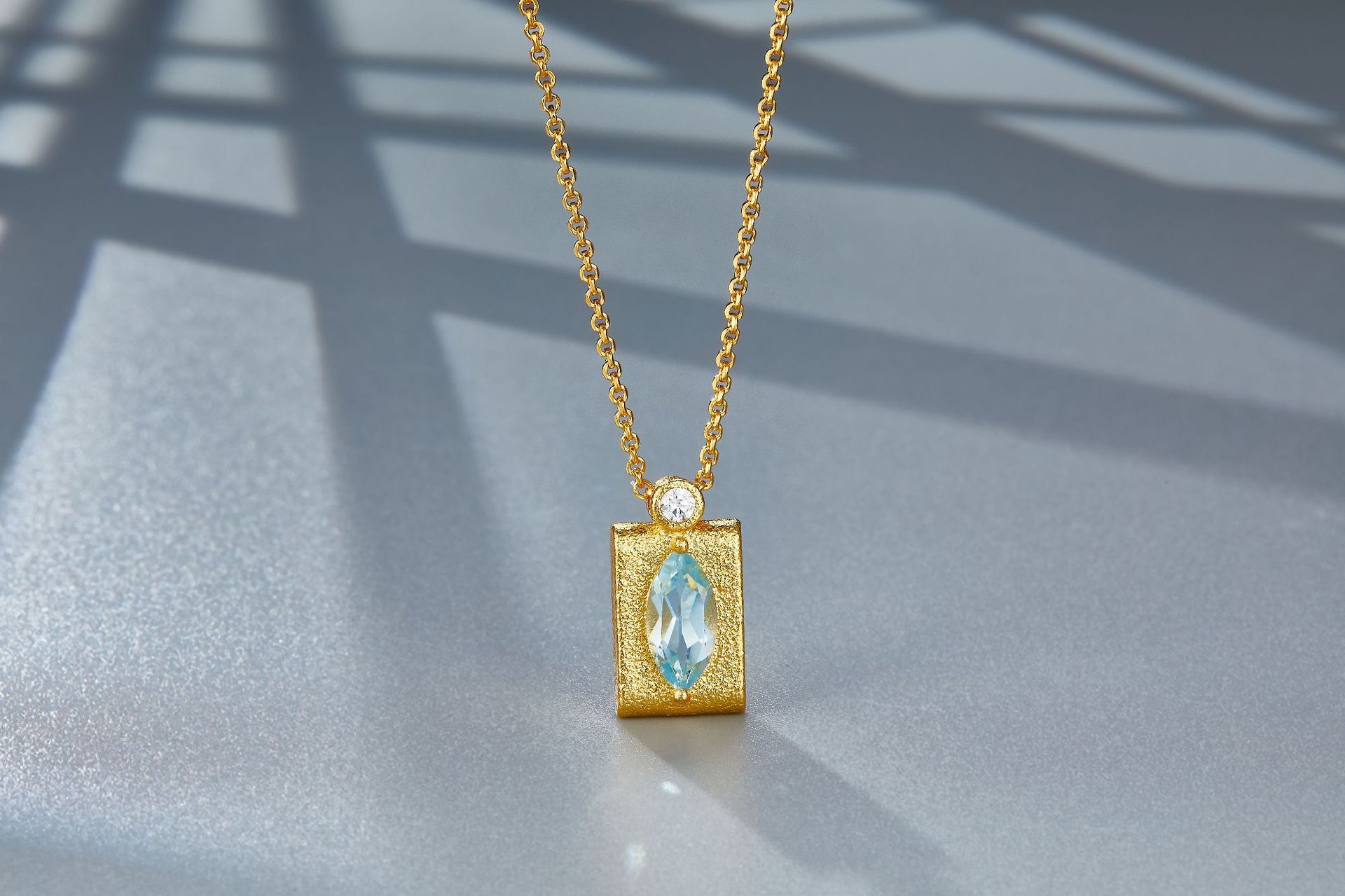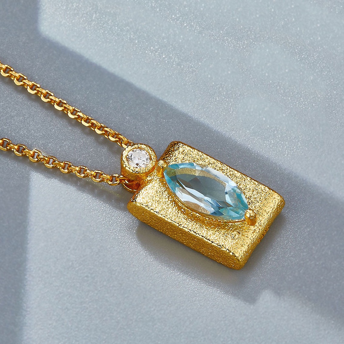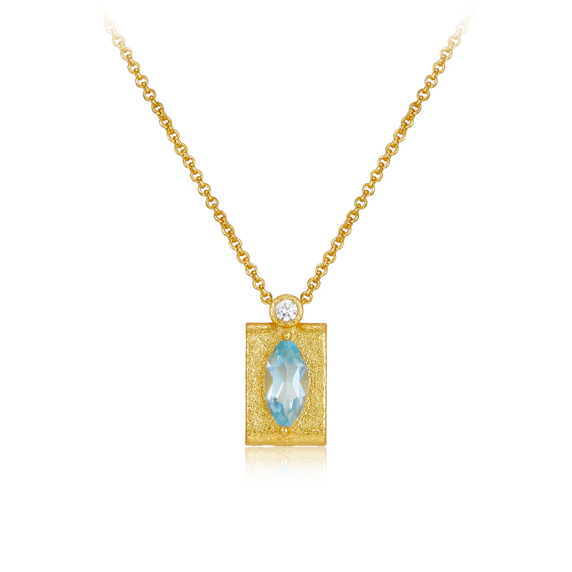 Natural Topaz Sterling Silver Gilded Aqua Gleam Necklace