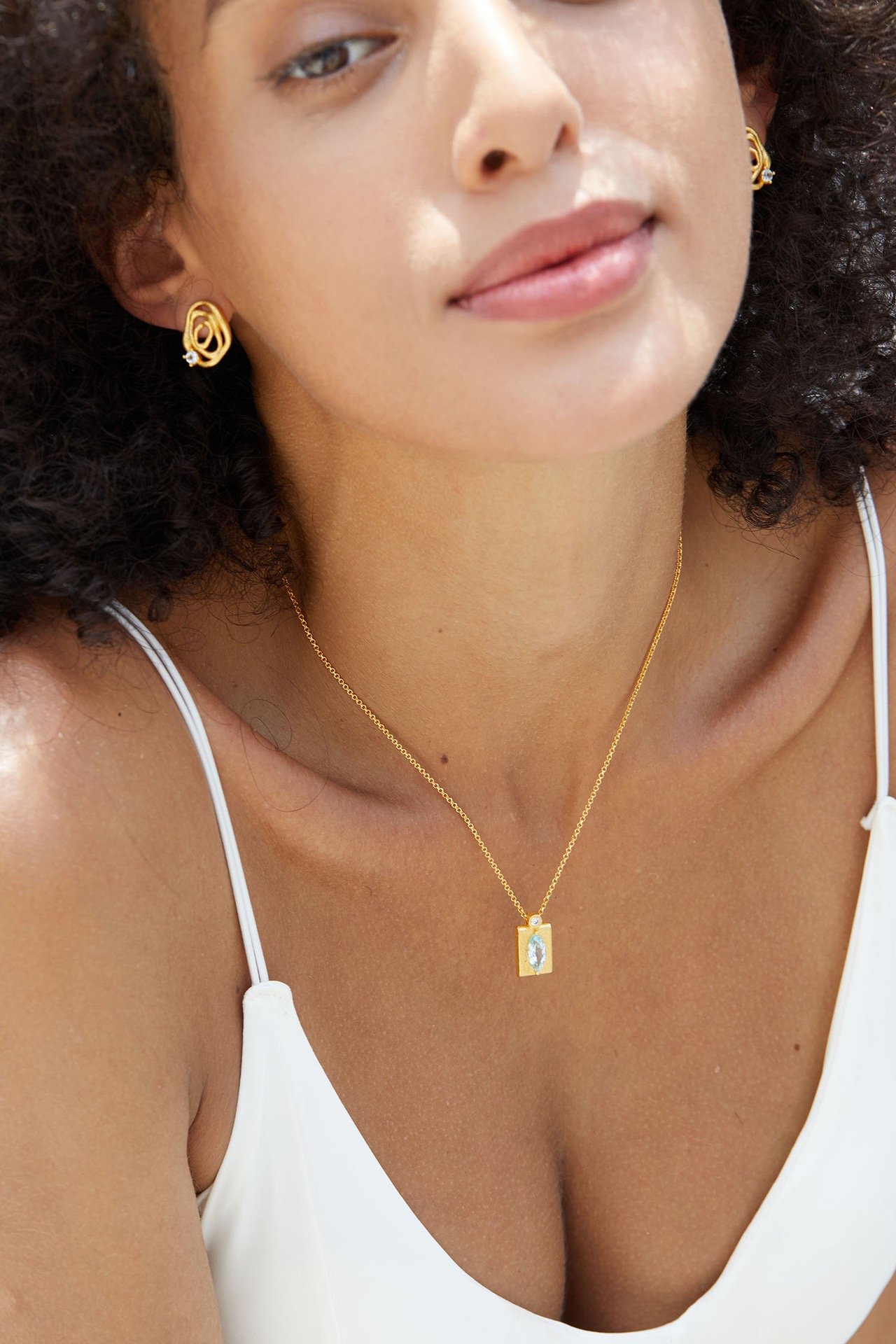 Be the first to review “Natural Topaz Sterling Silver Gilded Aqua Gleam Necklace”