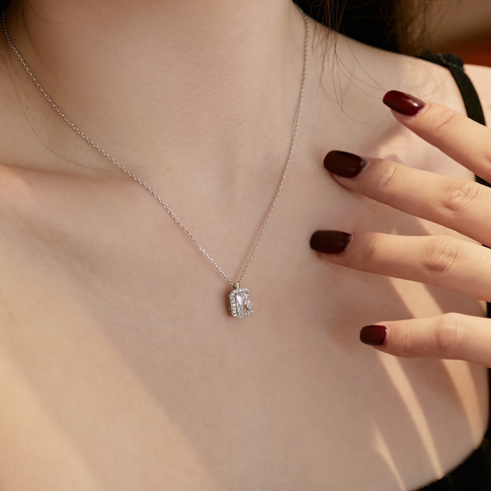 Sterling Silver 5A CZ Square Necklace Wholesale