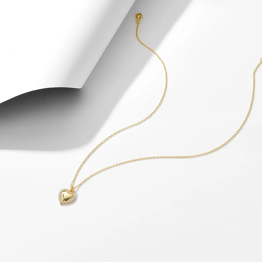 Sterling Silver CZ High Polish Mini Heart Pendant Necklace Wholesale