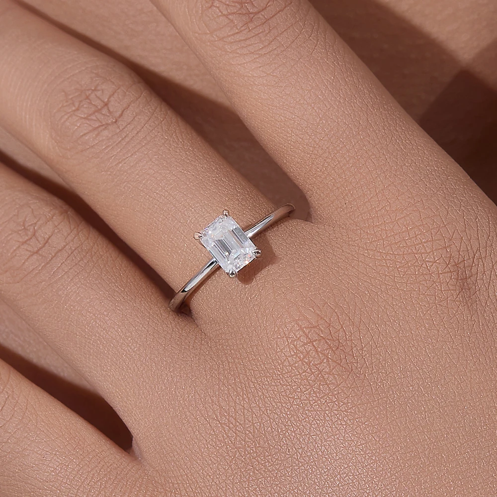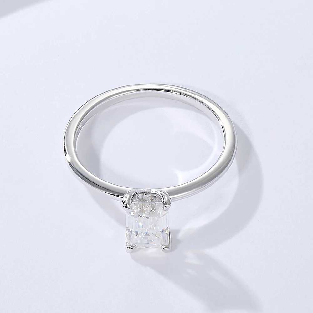 Sterling Silver Emerald Cut Moissanite Solitaire Ring Wholesale