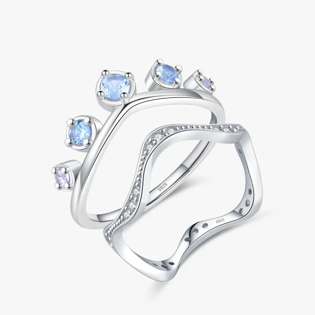 Sterling Silver Crown Light Blue Stackable Ring Set Wholesale