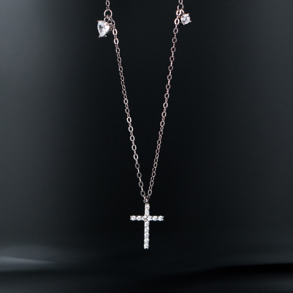 Sterling Silver CZ Cross & Heart Charm Necklace Wholesale