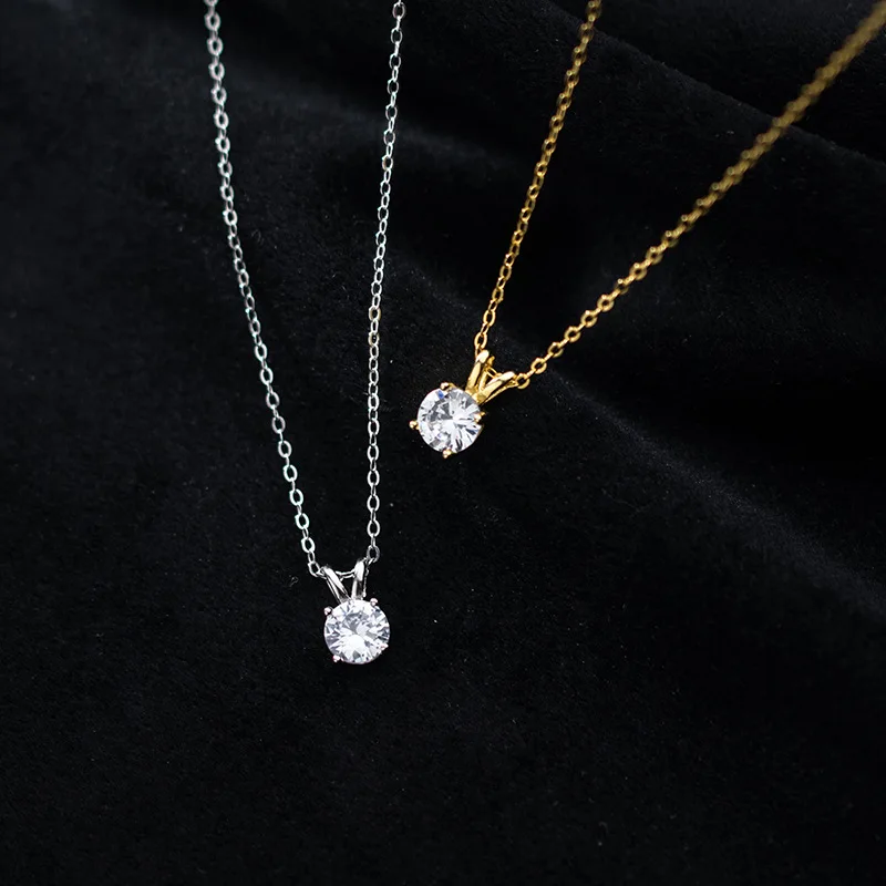 Sterling Silver Cable Chain 5A CZ Solitaire Necklace Wholesale