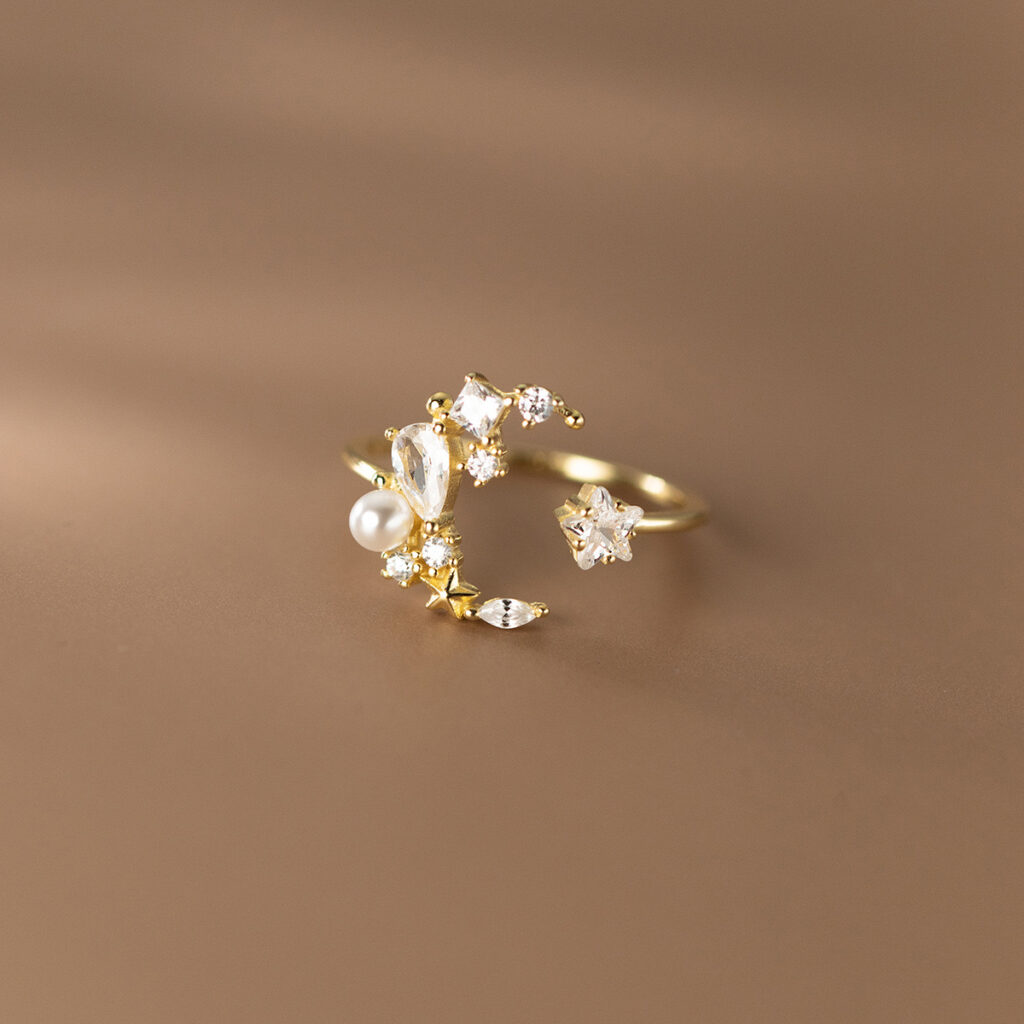 Sterling Silver CZ Moon and Sparkly Star Ring Wholesale