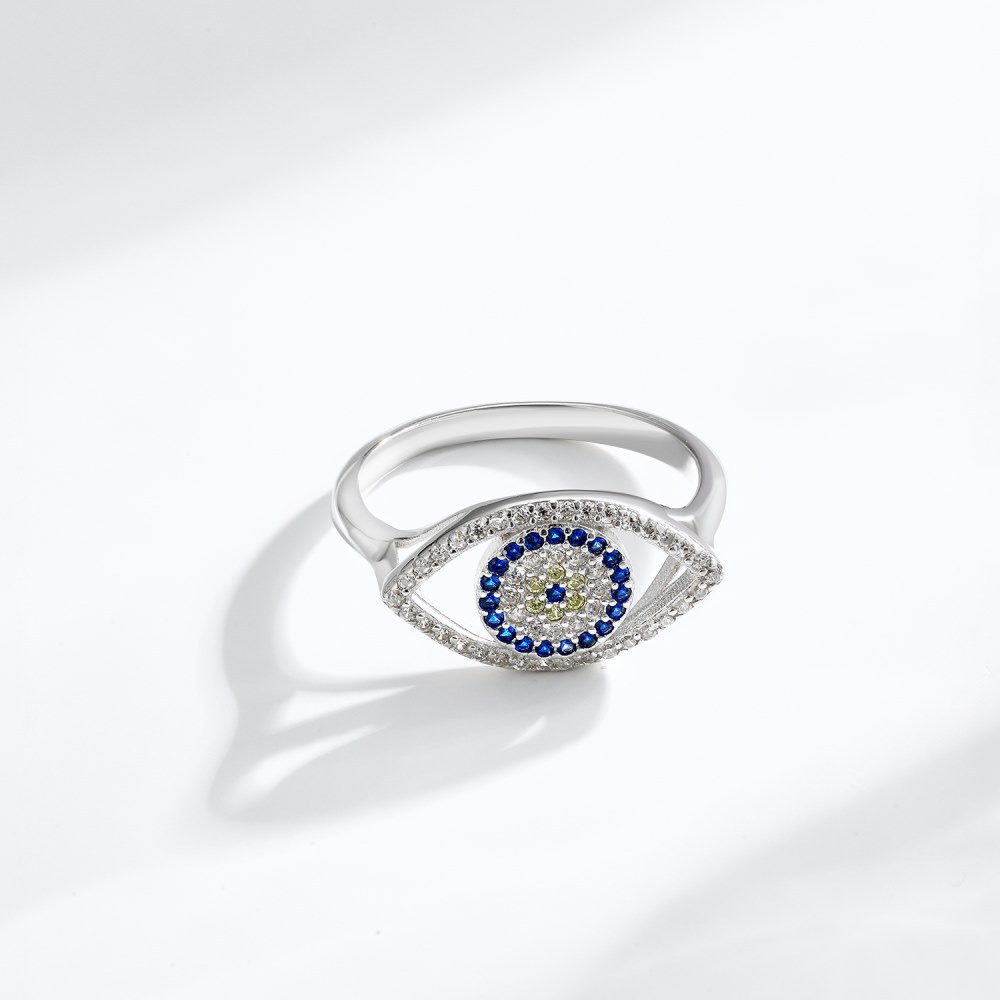 Sterling Silver CZ Evil Eye Statement Ring Wholesale