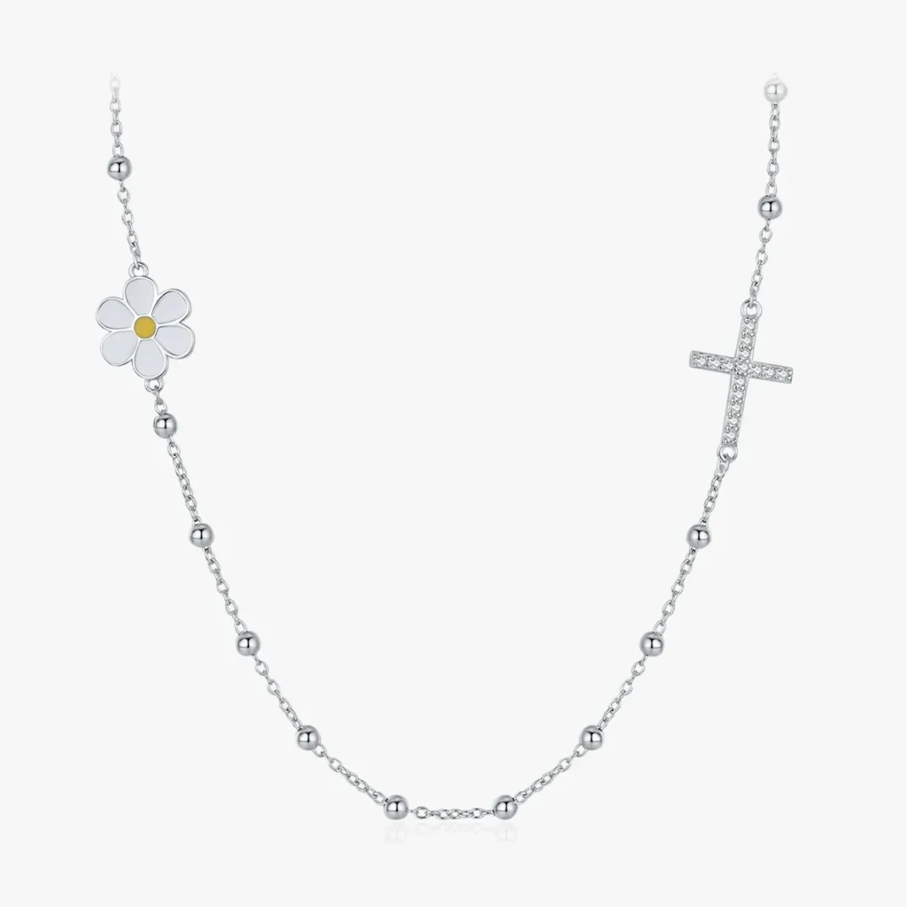 Sterling Silver Daisy Cross Flower Dazzling Choker Necklace Wholesale