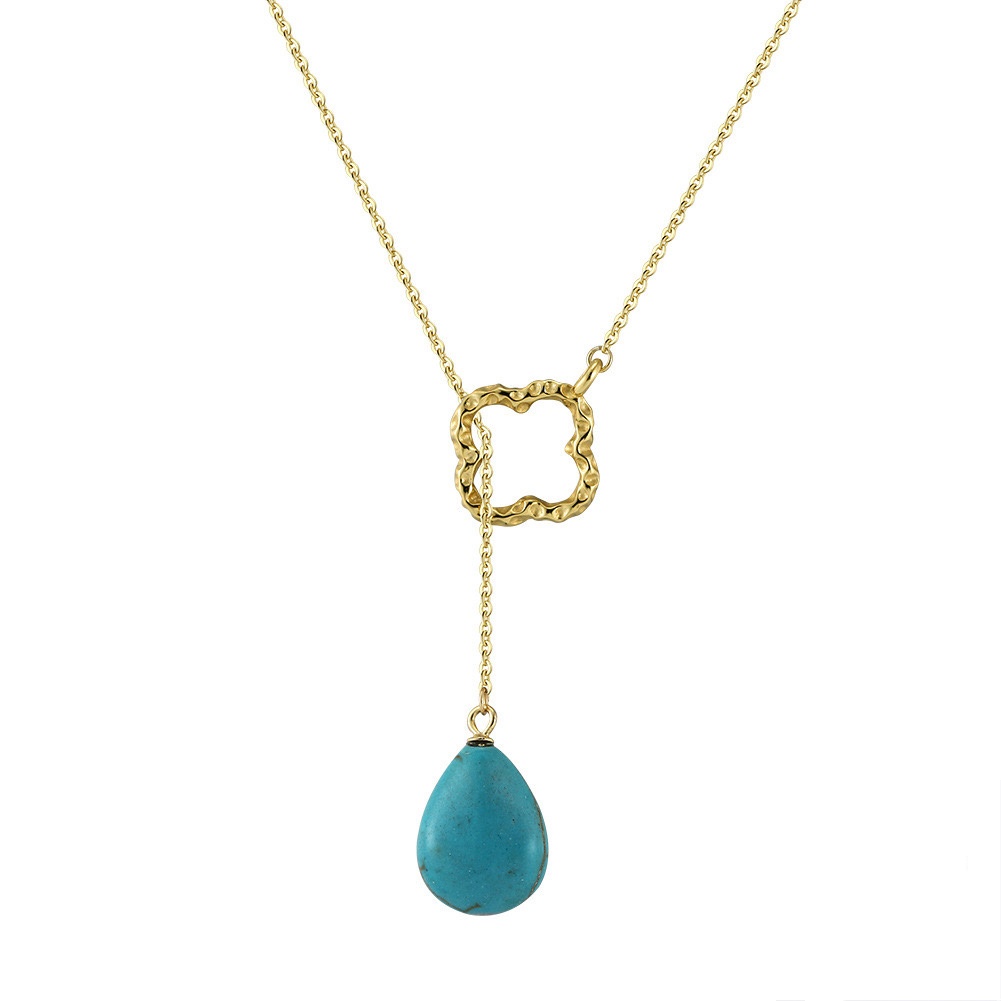 Sterling Silver Drop Turquoise Four Leaf Clover Necklace Wholesale