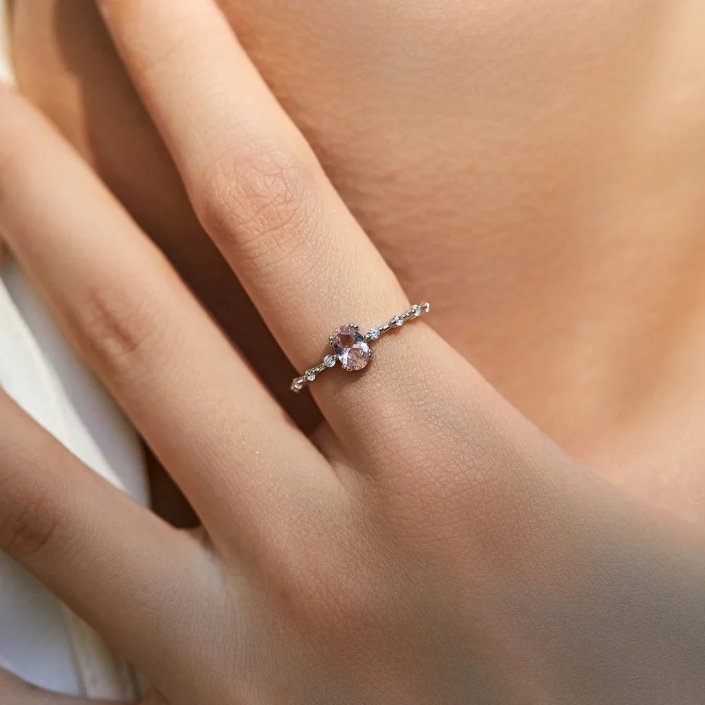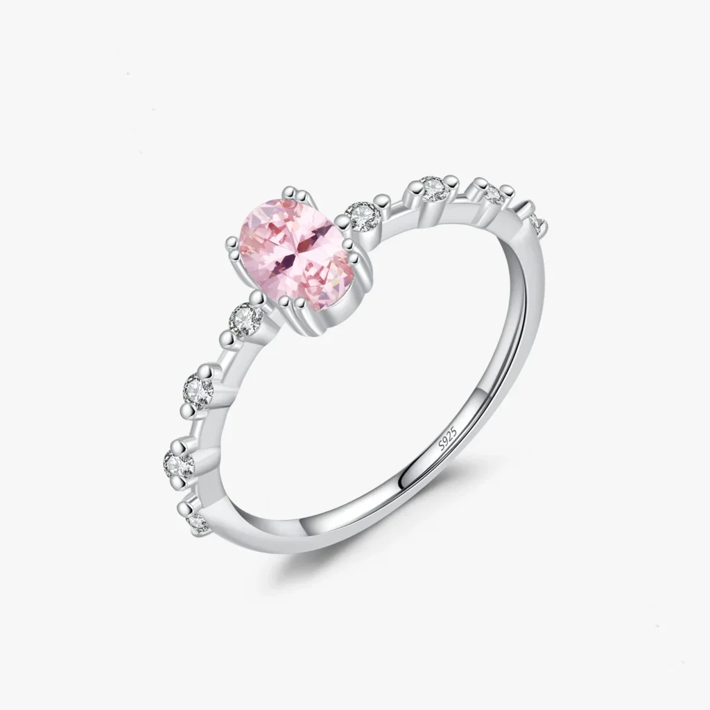 Sterling Silver Exquisite Created Oval Rose Quartz Ring Wholesale