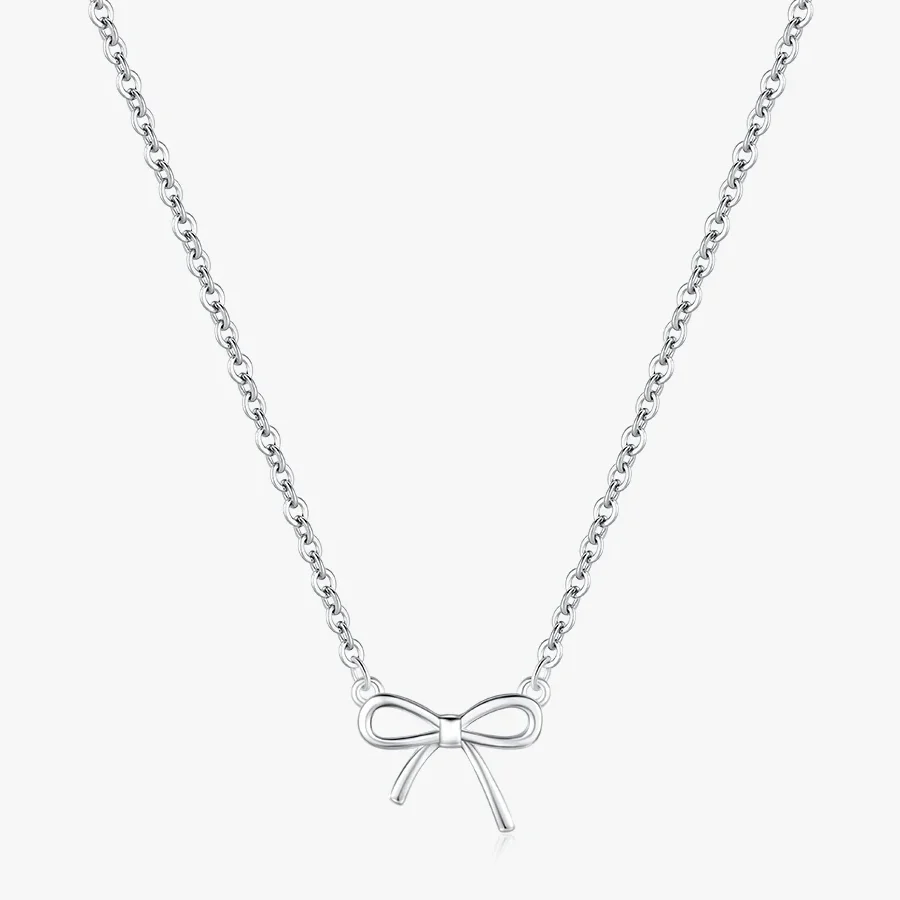 Sterling Silver Exquisite Simple Bowknot Pendant Necklace Wholesale