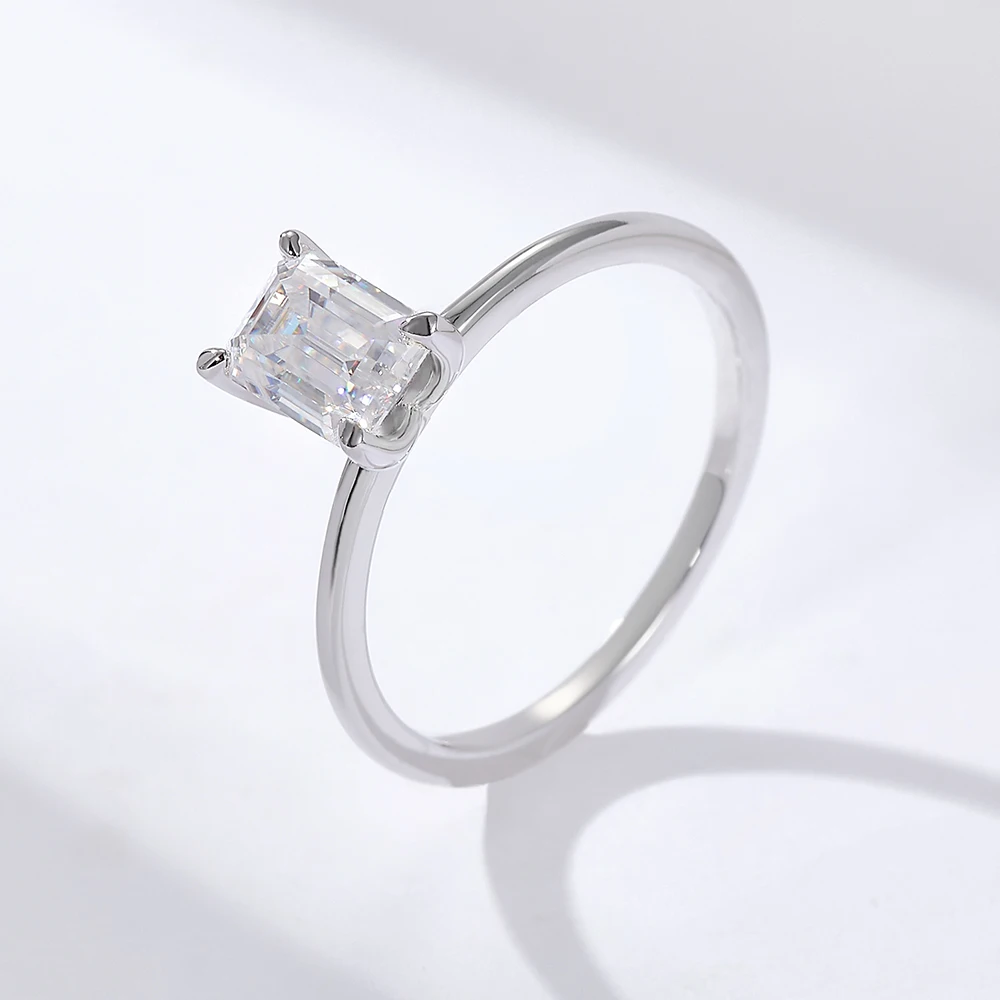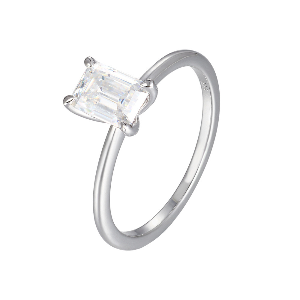 Sterling Silver Emerald Cut Moissanite Solitaire Ring Wholesale