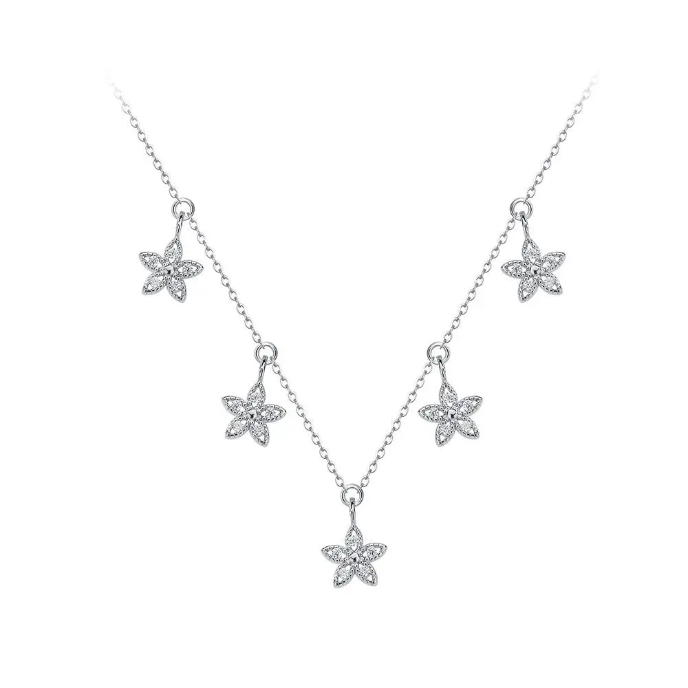 925 Sterling Silver Flower Shiny CZ Necklace Wholesale