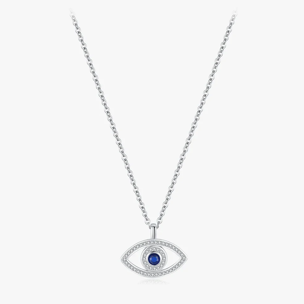 925 Sterling Silver Hollow Blue CZ Eye Pendant Necklace Wholesale