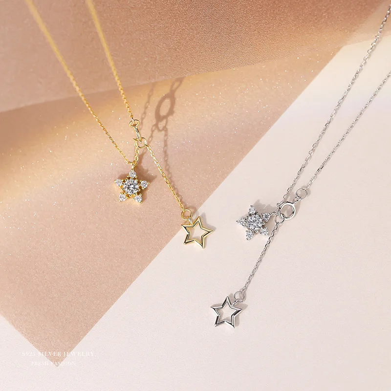 Gold Plated 925 Sterling Silver Drop Star Necklace Wholesale