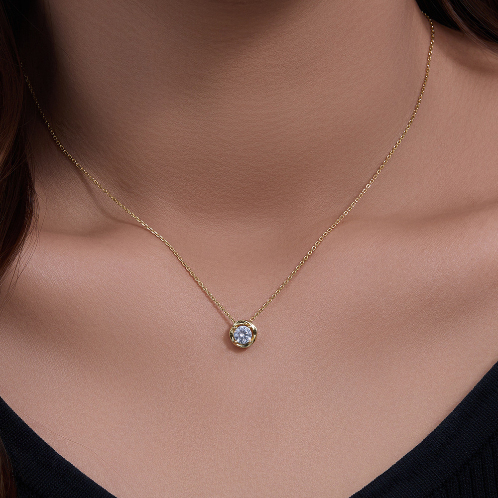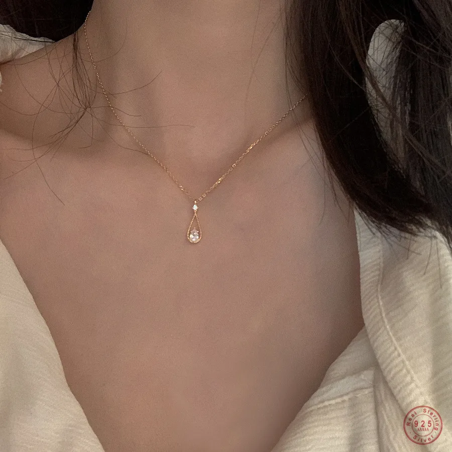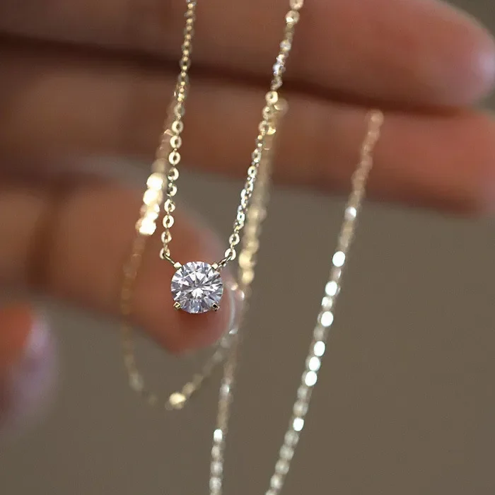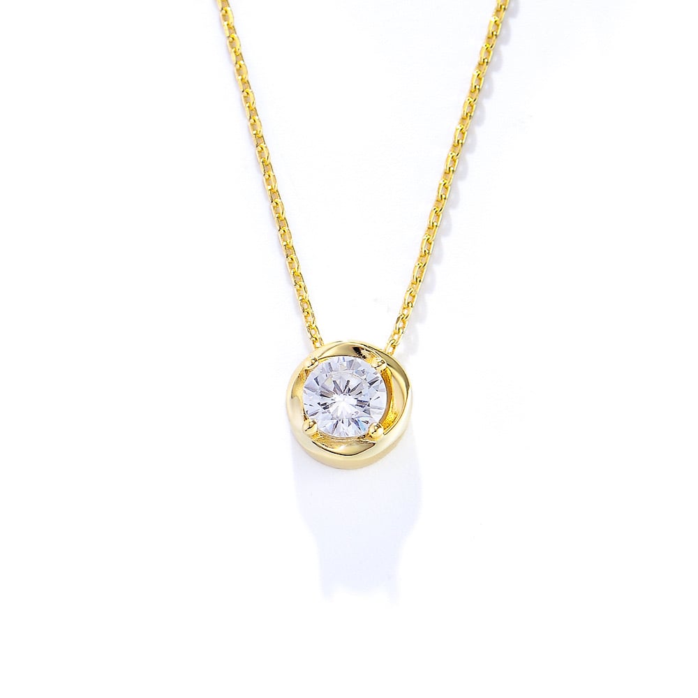 Gold Plated 925 Sterling Silver Classic Single CZ Necklace Wholesale Dropshipping