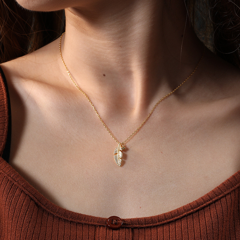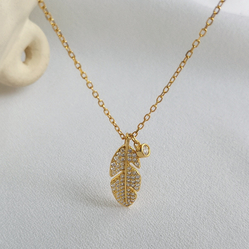 Gold Plated 925 Sterling Silver Sparkling CZ Leaf Necklace Wholesale