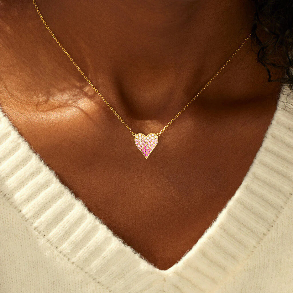 Gold Plated Silver CZ Gradient Pink Heart Necklace Wholesale