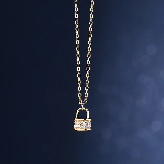Gold Plated Sterling Silver CZ Love Lock Necklace Wholesale